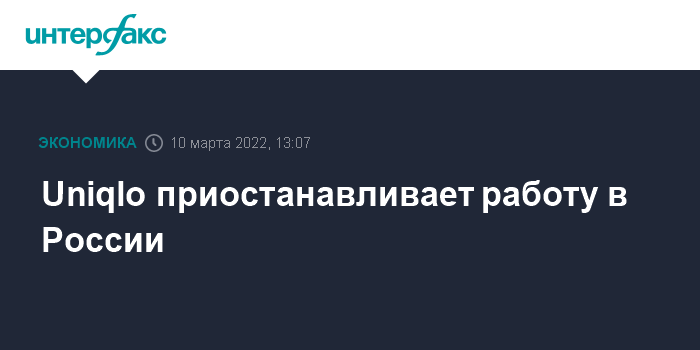 Москва. 10 марта. INTERFAX.RU - Японская Fast Retailing, владеющая сетью магазинов одежды Uniqlo, временно приостановит работу в России.