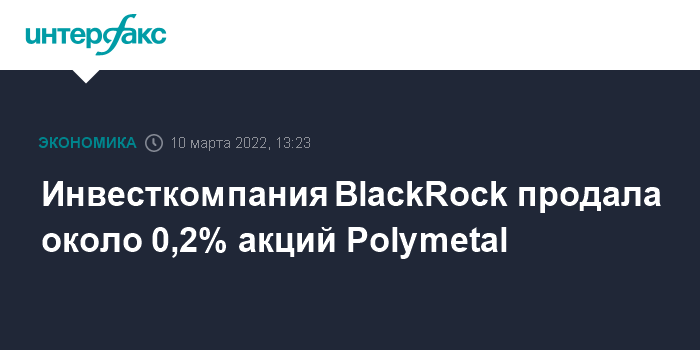 Москва. 10 марта. INTERFAX.RU - Инвесткомпания BlackRock сократила долю в Polymetal примерно на 0,17 п.п. - с 10,08% до 9,91%, следует из сообщения на LSE.