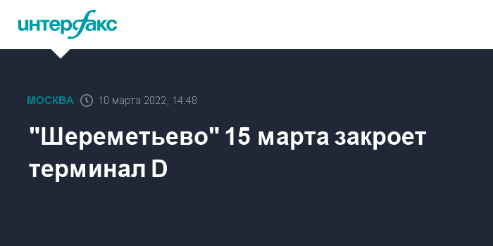 Москва. 10 марта. INTERFAX.RU - Аэропорт "Шереметьево" с 15 марта временно приостанавливает работу пассажирского терминала D.