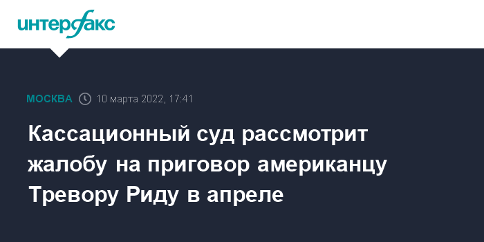 Кассационный суд рассмотрит жалобу на приговор американцу Тревору Риду в апреле