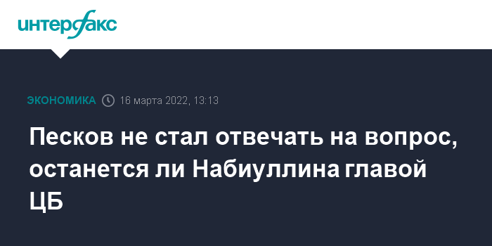 Песков не стал отвечать на вопрос, останется ли Набиуллина главой ЦБ