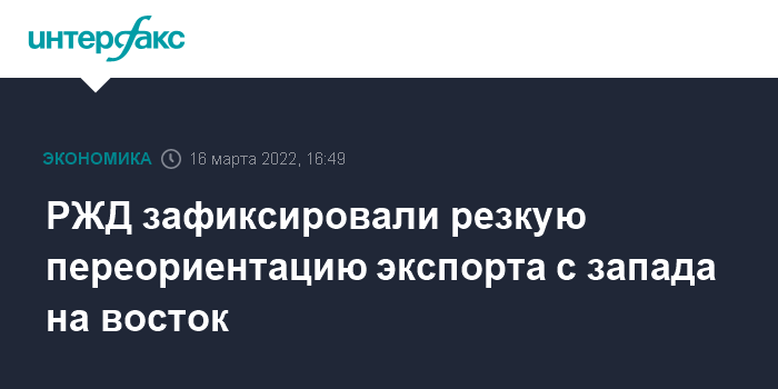 Москва. 16 марта. INTERFAX.RU - ОАО "РЖД" наблюдает переориентацию экспорта.