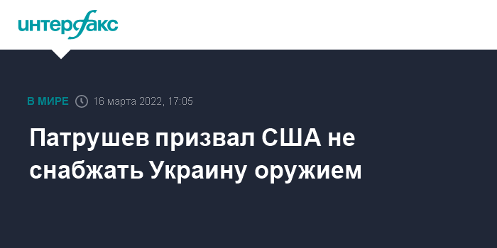 Москва. 16 марта. INTERFAX.RU - Секретарь Совета безопасности Николай Патрушев в разговоре с помощником президента США по нацбезопасности Джейкобом Салливаном призвал Вашингтон отказаться от поставок оружия Украине, сообщил пресс-секретарь аппарата Совбеза Евгений Аношин. Беседа прошла по телефону по инициативе американской стороны.