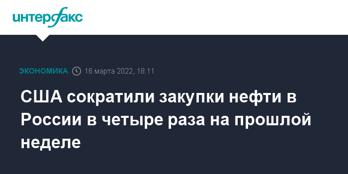 С середины октября прошлого года было семь недель, когда США вообще не закупали российскую нефть, в том числе три недели подряд с 1 по 21 января.