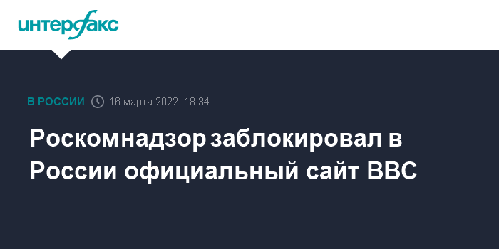 Москва. 16 марта. INTERFAX.RU - Роскомнадзор заблокировал по требованию Генпрокуратуры на территории РФ официальный сайт Британской радиовещательной корпорации (ВВС).