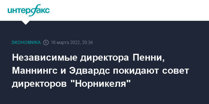 Независимые директора Пенни, Маннингс и Эдвардс покидают совет директоров "Норникеля"