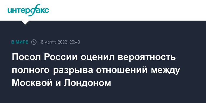 Москва. 16 марта. INTERFAX.RU - Посол России в Лондоне Андрей Келин считает несвоевременной постановку вопроса о возможном разрыве отношений между РФ и Великобританией.