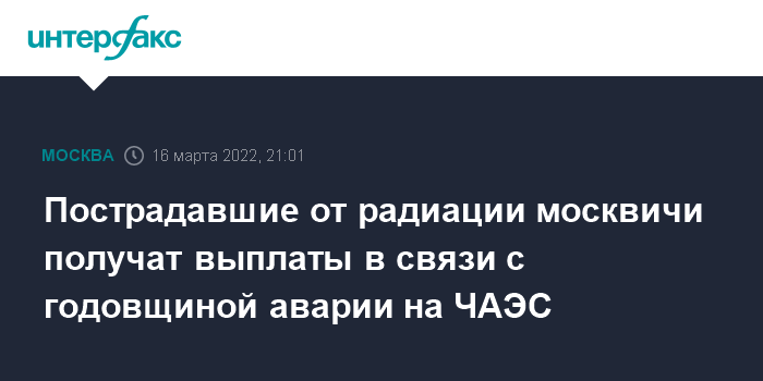 Пострадавшие от радиации москвичи получат выплаты в связи с годовщиной аварии на ЧАЭС