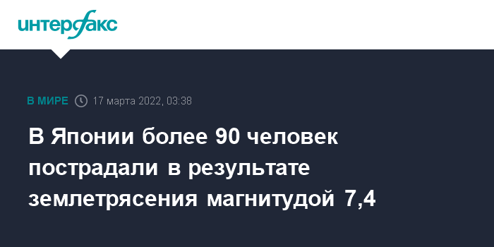 В Японии более 90 человек пострадали в результате землетрясения магнитудой 7,4