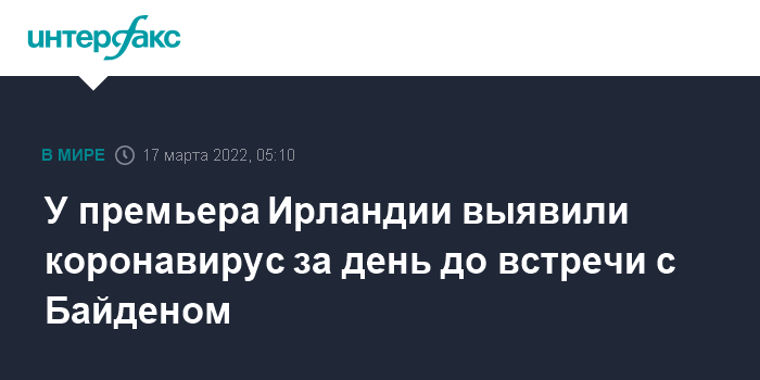 У премьера Ирландии выявили коронавирус за день до встречи с Байденом