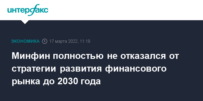 Минфин полностью не отказался от стратегии развития финансового рынка до 2030 года