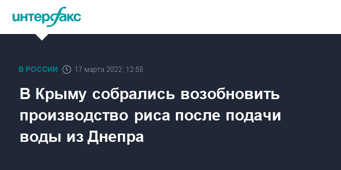 Врио министра также подчеркнула, что рис, который производился на полуострове до 2014 года, пользовался большим спросом благодаря высоким вкусовым качествам. Кроме того, возделывание риса для аграриев более экономически выгодно, чем засухоустойчивых зерновых культур, на которые были переориентированы предприятия после перекрытия канала.