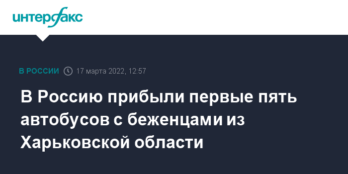 Москва. 17 марта. INTERFAX.RU - Первые пять автобусов с 175 беженцами из Харьковской области прибыли на границу с РФ в Белгородской области, сообщили в Минобороны России в четверг.