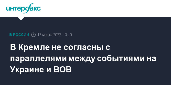 Москва. 17 марта. INTERFAX.RU - В Кремле не согласны со сравнением событий, происходящих в данный момент на Украине, с Великой Отечественной войной.