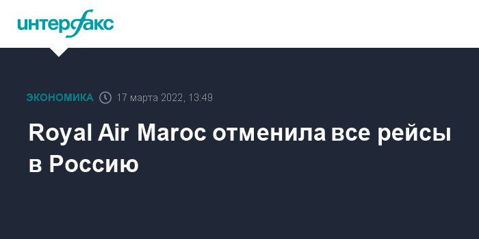 Москва. 17 марта. INTERFAX.RU - Национальный перевозчик Марокко Royal Air Maroc отменил все рейсы в Россию на неопределенный срок, сообщает Ассоциация туроператоров России.