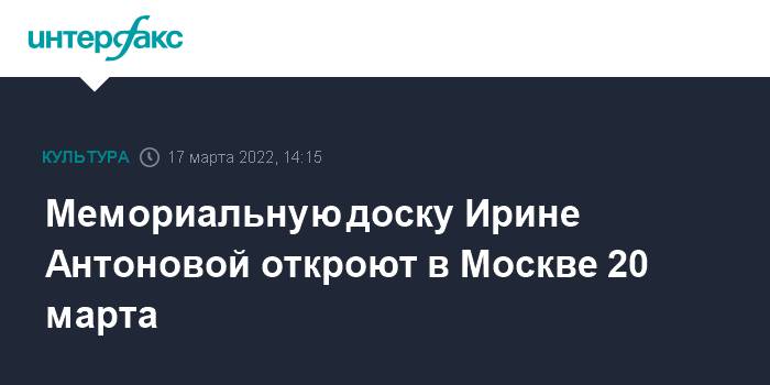 Мемориальную доску Ирине Антоновой откроют в Москве 20 марта