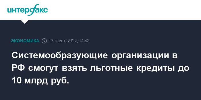 Системообразующие организации в РФ смогут взять льготные кредиты до 10 млрд руб.