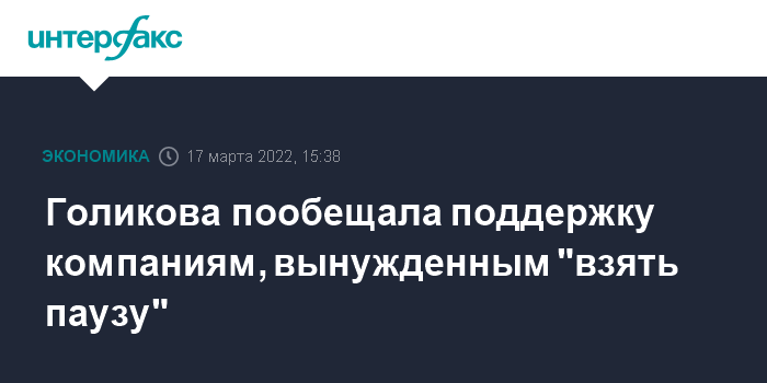 Голикова пообещала поддержку компаниям, вынужденным "взять паузу"