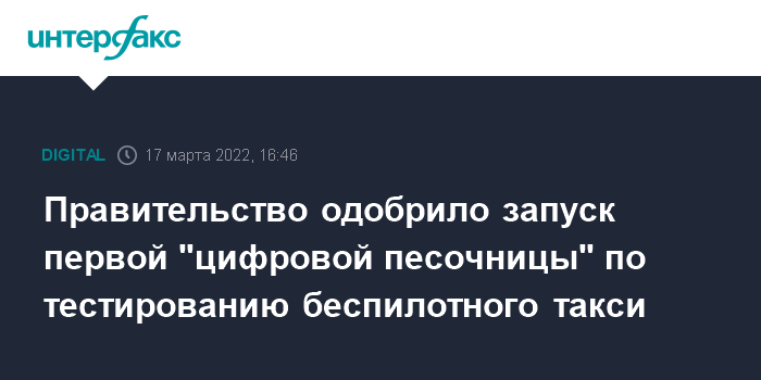 Правительство одобрило запуск первой "цифровой песочницы" по тестированию беспилотного такси