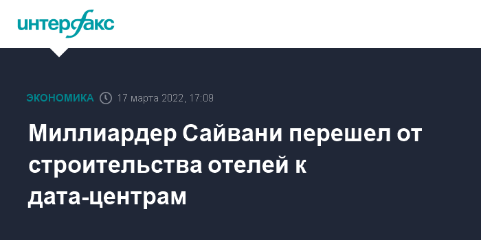 Миллиардер Сайвани перешел от строительства отелей к дата-центрам