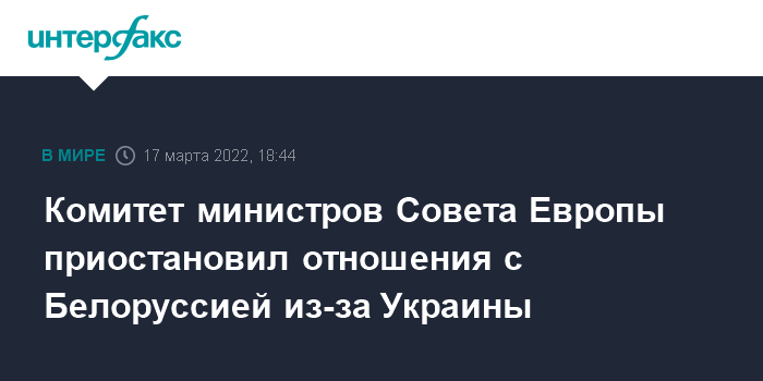 Комитет министров Совета Европы приостановил отношения с Белоруссией из-за Украины