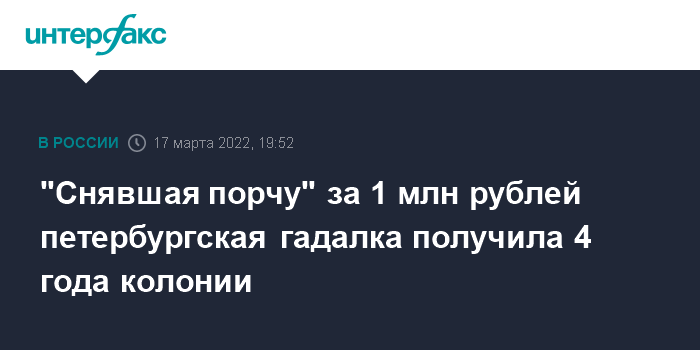 "Снявшая порчу" за 1 млн рублей петербургская гадалка получила 4 года колонии