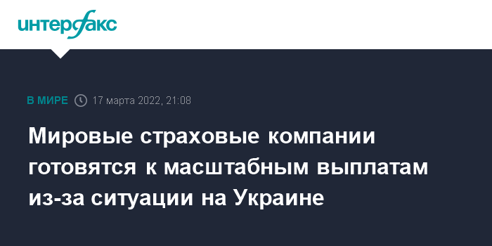 Мировые страховые компании готовятся к масштабным выплатам из-за ситуации на Украине