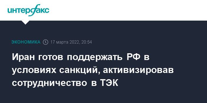 Иран готов поддержать РФ в условиях санкций, активизировав сотрудничество в ТЭК