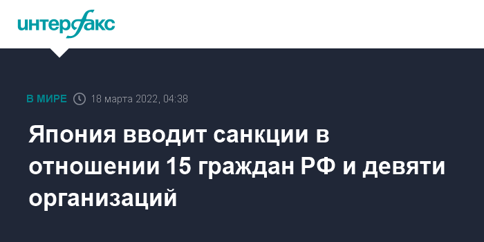 Ранее Япония ввела санкции в отношении высших должностных лиц России, включая президента Владимира Путина, ряда бизнесменов, депутатов, а также против юридических лиц. Кроме того, Япония лишила РФ статуса наибольшего благоприятствования в торговле.