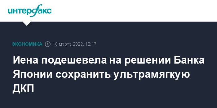 Инфляция в Японии в феврале составила всего 0,9% в годовом выражении против 0,5% месяцем ранее. Показатель хоть и стал максимальным с апреля 2019 года, но не сравнится с уровнем инфляции в США, достигшим 7,9% в феврале - максимума за последние 39 лет. Однако в итоговом заявлении Банка Японии отмечается, что инфляция, как ожидается, будет ускоряться из-за роста цен на энергоресурсы и сырьевые товары. "Прогнозируется увеличение базового инфляционного давления", - отмечается в документе.