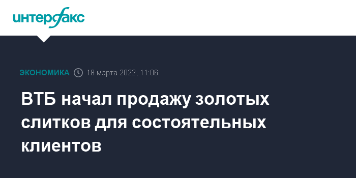 Москва. 18 марта. INTERFAX.RU - ВТБ запускает продажу инвестиционных драгоценных слитков для состоятельных клиентов, говорится в сообщении банка.
