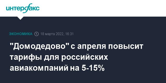 Москва. 18 марта. INTERFAX.RU - Аэропорт "Домодедово" с апреля этого года повысит тарифы на обслуживание российских авиакомпаний, следует из материалов на сайте аэропорта и подтверждает его пресс-служба.