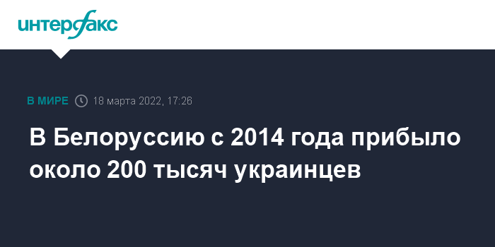 Москва. 18 марта. INTERFAX.RU - С начала конфликта на Востоке Украины в Белоруссию прибыло около 200 тыс. украинцев, заявил президент Белоруссии Александр Лукашенко в интервью японскому телеканалу TBS, фрагмент которого опубликовал близкий к пресс-службе президента телеграм-канал "Пул Первого" в пятницу.