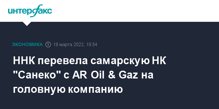 ННК перевела самарскую НК "Санеко" с AR Oil & Gaz на головную компанию