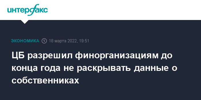 ЦБ разрешил финорганизациям до конца года не раскрывать данные о собственниках