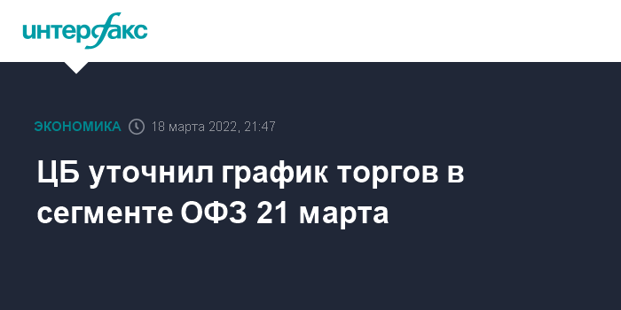 ЦБ уточнил график торгов в сегменте ОФЗ 21 марта