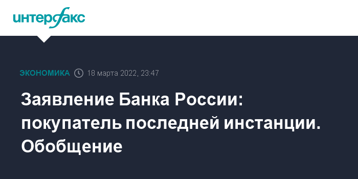 Заявление Банка России: покупатель последней инстанции. Обобщение