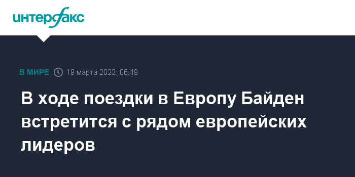 Москва. 19 марта. INTERFAX.RU - Представитель Белого дома Джен Псаки рассказала о деталях поездки президента США Джо Байдена в Европу, которая состоится во второй половине следующей недели.