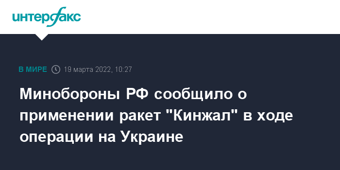 Минобороны РФ сообщило о применении ракет "Кинжал" в ходе операции на Украине