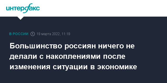 Москва. 19 марта. INTERFAX.RU - Более 60% россиян не стали ничего делать со своими денежными накоплениями в конце февраля - начале марта, свидетельствуют данные опроса аналитического центра НАФИ.