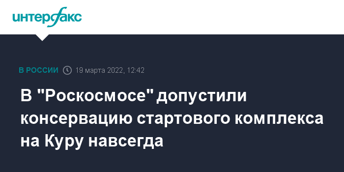 Москва. 19 марта. INTERFAX.RU - Глава "Роскосмоса" Дмитрий Рогозин заявил, что в связи с санкциями Евросоюза, стартовый комплекс для российских ракет "Союз" на космодроме Куру во Французской Гвиане может быть законсервирован навсегда.