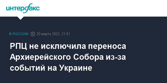 Москва. 20 марта. INTERFAX.RU - В Русской православной церкви (РПЦ) рассматривают возможность изменения даты и формата проведения Архиерейского Собора, который был запланирован на май этого года.