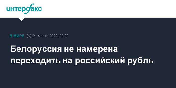 Москва. 21 марта. INTERFAX.RU - Речь о переходе Белоруссии на российский рубль пока не идет, заявил в воскресенье вечером в эфире гостелеканала "Беларусь-1" министр финансов республики Юрий Селиверстов.