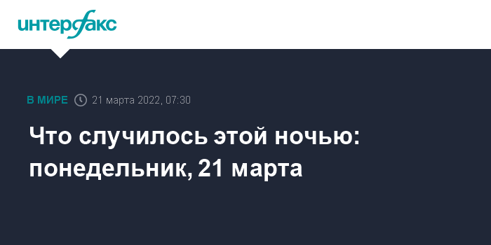 Москва. 21 марта. INTERFAX.RU - Краткая сводка событий, произошедших к утру: