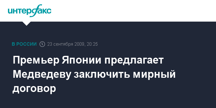 Премьер Японии предлагает Медведеву заключить мирный договор