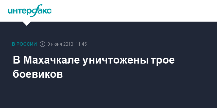 Москва. 3 июня. INTERFAX.RU - Три боевика ликвидированы в ходе контртеррористической операции в Махачкале.