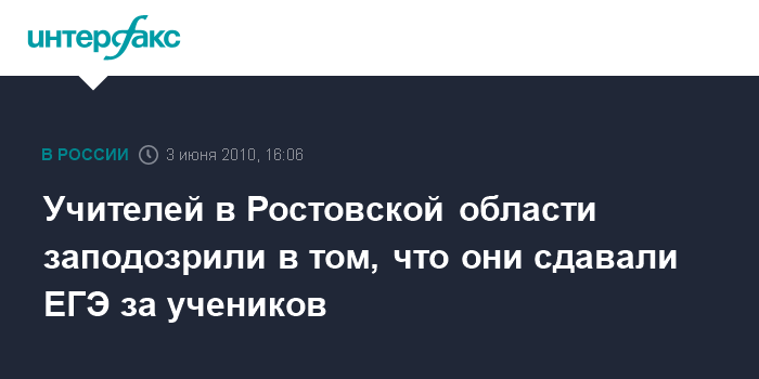 Москва. 3 июня. ИНТЕРФАКС - Правоохранительные органы начали проверку в связи с информацией о том, что учителя города Морозовска Ростовской области сдавали ЕГЭ по русскому языку за выпускников. Доследственную проверку проводят органы СКП совместно с региональной прокуратурой.