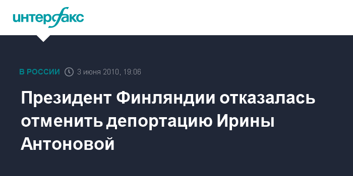 Президент Финляндии отказалась отменить депортацию Ирины Антоновой