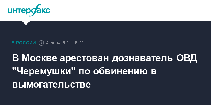 В Москве арестован дознаватель ОВД "Черемушки" по обвинению в вымогательстве