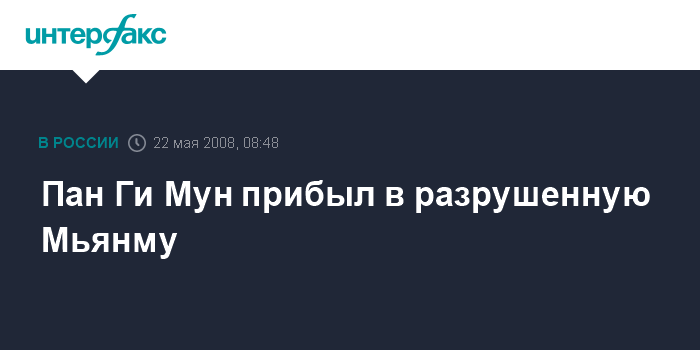 Лондон. 22 мая. INTERFAX.RU - Генеральный секретарь ООН Пан Ги Мун сегодня прибыл в пострадавшую от урагана Мьянму (Бирму). Он намерен добиваться от властей этой страны разрешения на увеличение гуманитарной помощи, сообщает британская телерадиокомпания BBC.